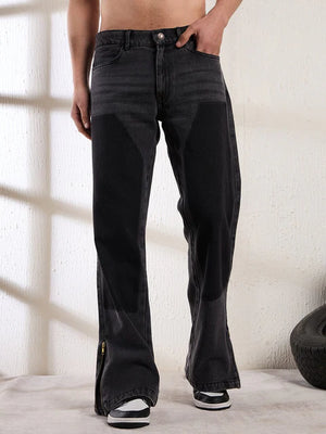 Unleash your playful side with this Black Contrast Patched Flared Zipped Denim - 100% Cotton Heavyweight Denim. The denim is washed for a relaxed fit and features front contrast patchwork for a fun and quirky effect. The adjustable bottom hem allows you to unzip and achieve a flared look, making this denim a unique addition to your wardrobe.Fabric - 100% Cotton Heavyweight Denim Denim washedFront Contrast Patchwork effectRelaxed fitAdjustable bottom hem, unzip and achieve a flared lookThe model (Chest : 40 in. , Waist 32 in.  and Height 6 Ft. ) is wearing  size L/32