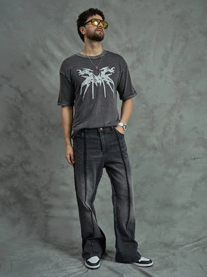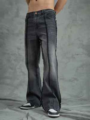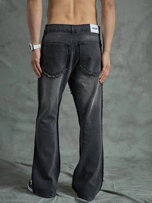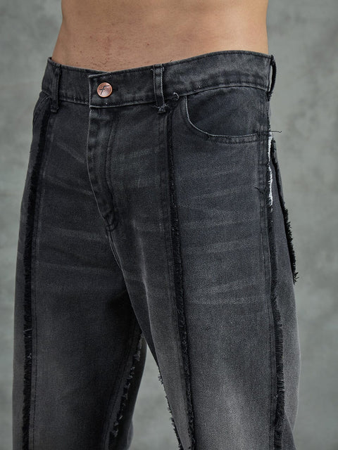 Expertly crafted from 100% cotton denim, Black Cut And Sew Frayed Denim features a flared wide legged fit, high waisted design with a waistband and belted loop for a secure and stylish fit. The button closure and zip fly add convenience, while the frayed details on the front and vintage wash effect add a touch of unique flair to this must-have denim.Product Details: