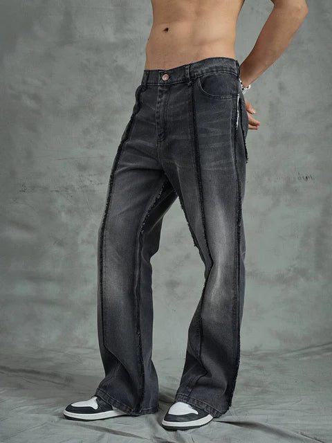 Expertly crafted from 100% cotton denim, Black Cut And Sew Frayed Denim features a flared wide legged fit, high waisted design with a waistband and belted loop for a secure and stylish fit. The button closure and zip fly add convenience, while the frayed details on the front and vintage wash effect add a touch of unique flair to this must-have denim.