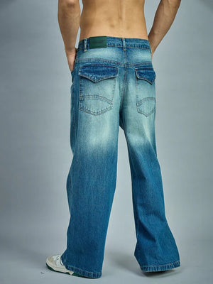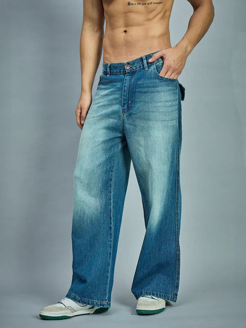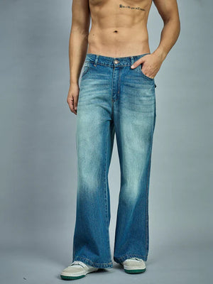 Fabric - 100% Cotton DenimFlared Legged fitWaistband with Belted LoopHigh WaistedButton Closure with Zip FlyFrayed Details on frontVintage Wash EffectThe model (Chest : 40 in. , Waist 32 in. and Height 6 Ft. ) is wearing size L/32