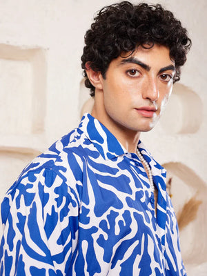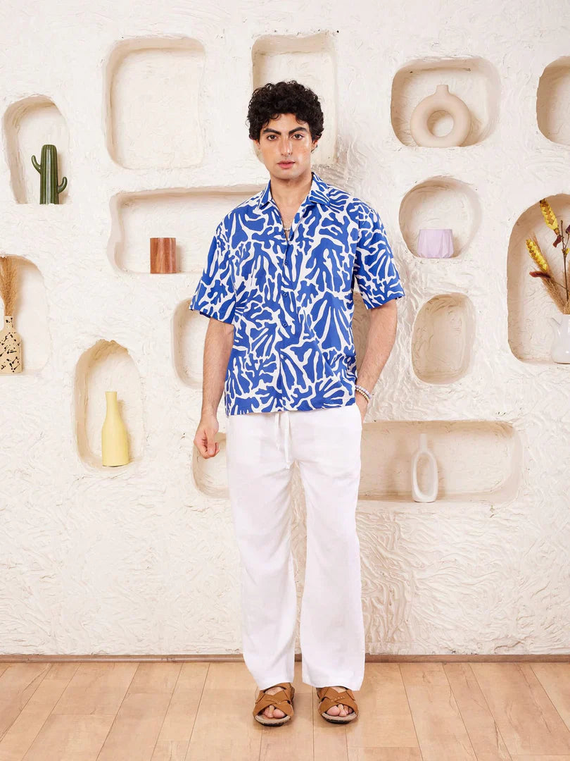 Printed shirt in cotton, has a spread collar, half sleeves, straight-cut hem with a button placket.