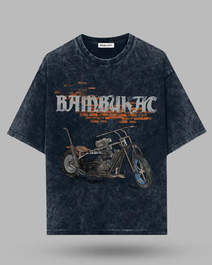 BAMBUKAT Acid Wash Oversized T-Shirt – Vintage Motorcycle Edition 🏍️🖤🔥