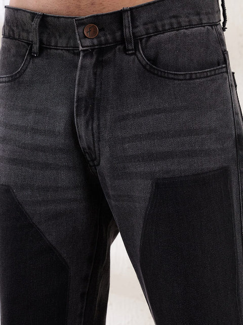 Black Contrast Patched Flared Zipped Denim